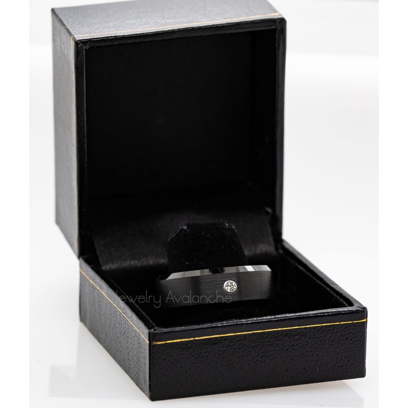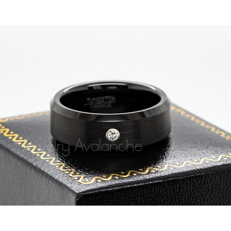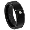 - 8MM Black BeveledTungsten Carbide Wedding Band with Bezel Set 0.07ctw Round Diamond Accent - Brushed Finish Comfort Fit Tungsten Anniversary Ring - Cobalt Free Tungsten Ring