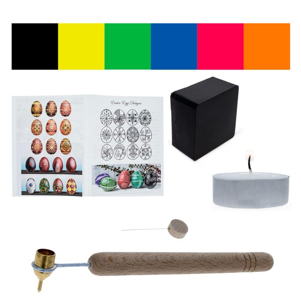 0.3 mm Fine Brass Tip Kistkas, Beeswax, 6 Dyes, Candle and Instructions Ukrainian Easter Egg Decorating Kit