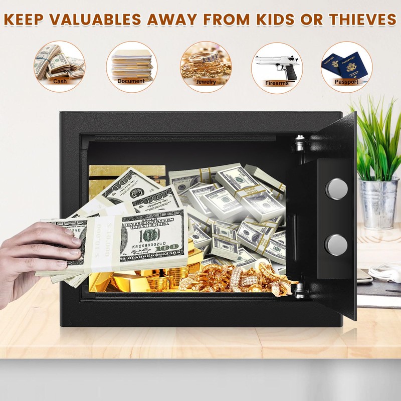 - 【LIGHTWEIGHT MINI SAFE】Our money safe box is not too heavy to prevent theft , it is just a lightweight safe box to secure your small item