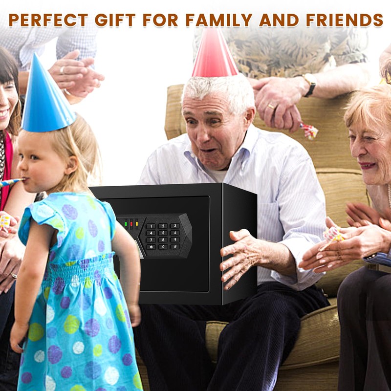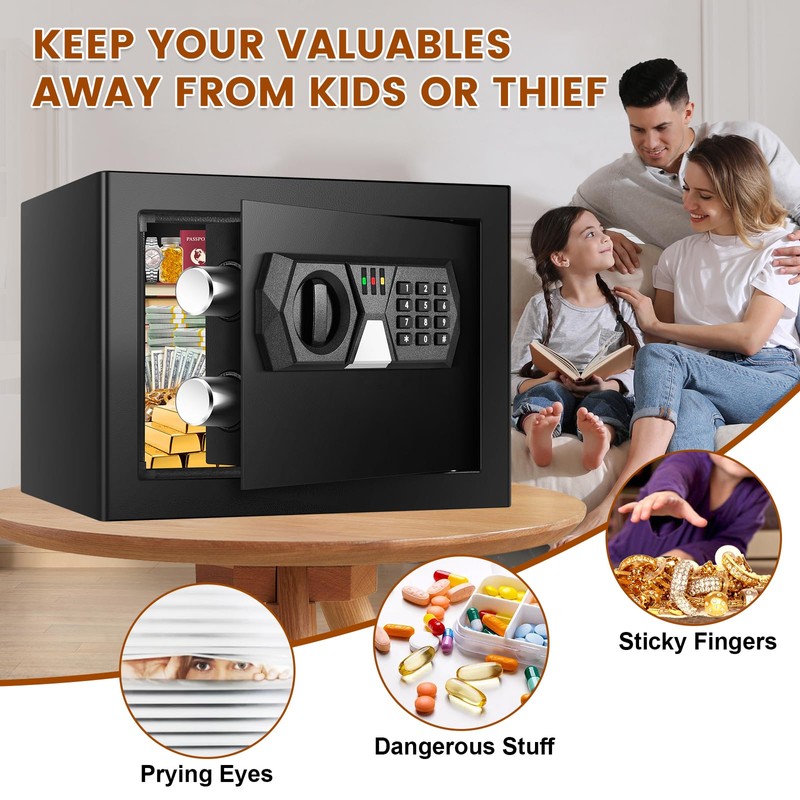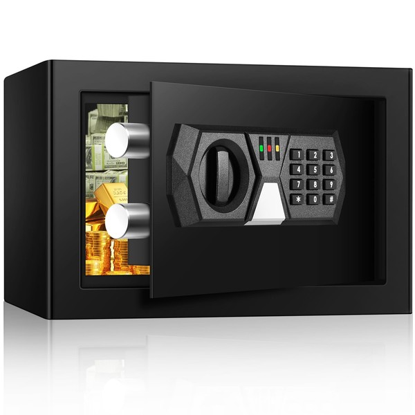0.37 Cuft Small Safe Box, Mini Home safes with Programmable Keypad Keys, Personal Security Digital Money Safe for Cash Valuables Documents Medicines (without shelf)