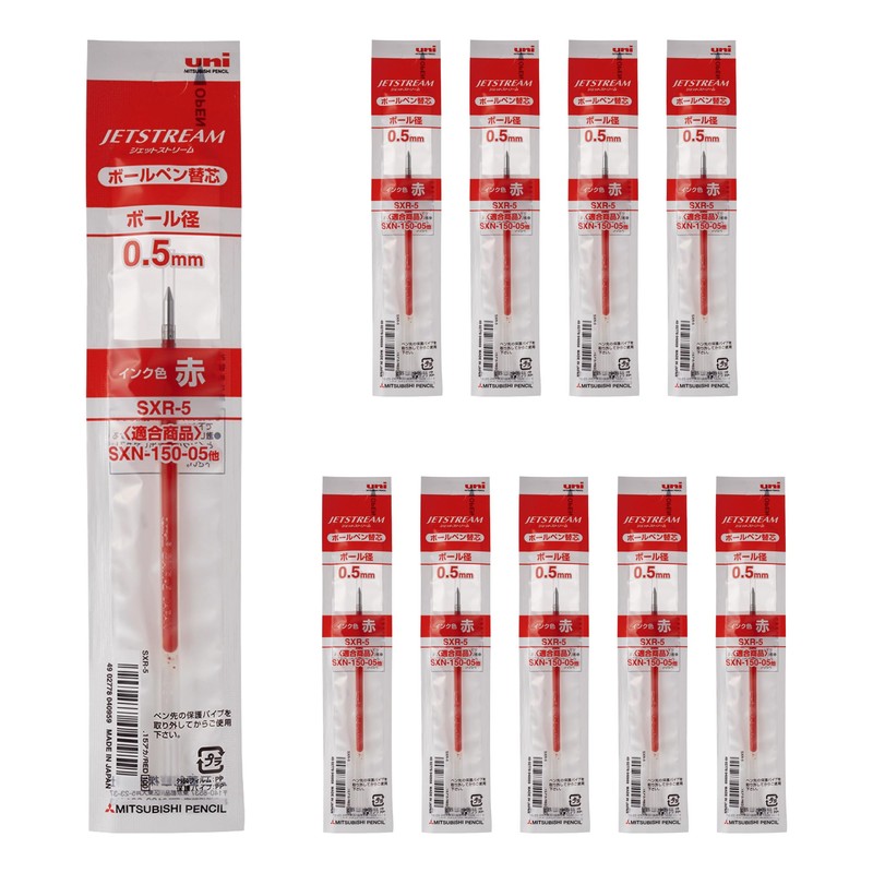 三菱鉛筆 ボールペン替芯 ジェットストリーム 0.5 赤 10本 SXR5.15