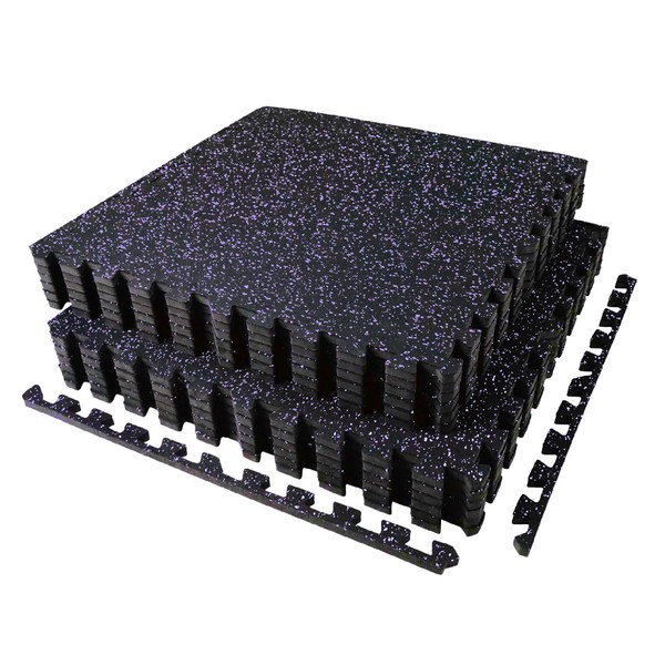 0.56in Thick 48 Sq Ft Exercise Equipment Mats, 12 Tiles Upgraded Rubber Top with High Density EVA Foam, Large Interlocking Puzzle Gym Flooring for Home Gym, Heavy Weight Workout, Black & Purple
