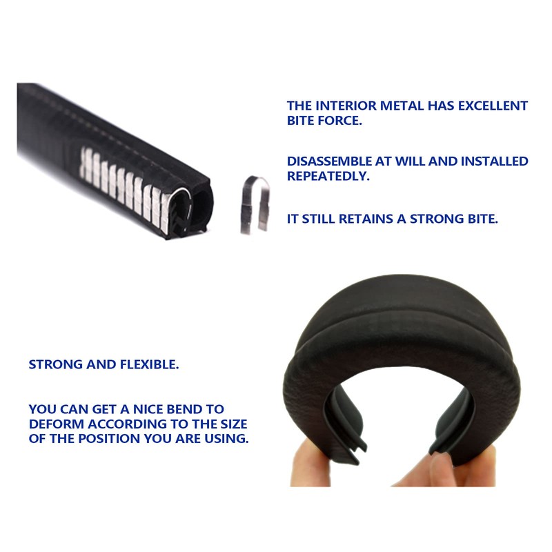 - 【WIDE USING】Could be used as automotive door seals,cover the metal edge of car door and car body.Fits most of cars,trucks,SUV,ATV,UTV,boats.Could be used as truck fender trim,trim seal for caravan,weatherstripping for campers,trunk weather stripe.Protect the external car door edge from the clash on the walls or other cars.