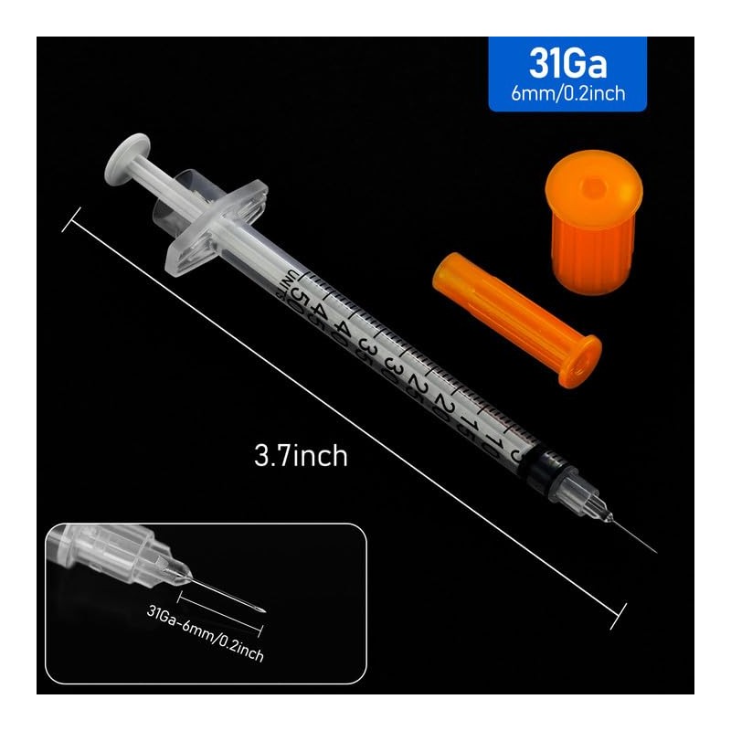 0.5ml 31Ga 1/4-Inch 6mm Disposable Syringe for Scientific Lab, Individually Wrapped, Pack of 20