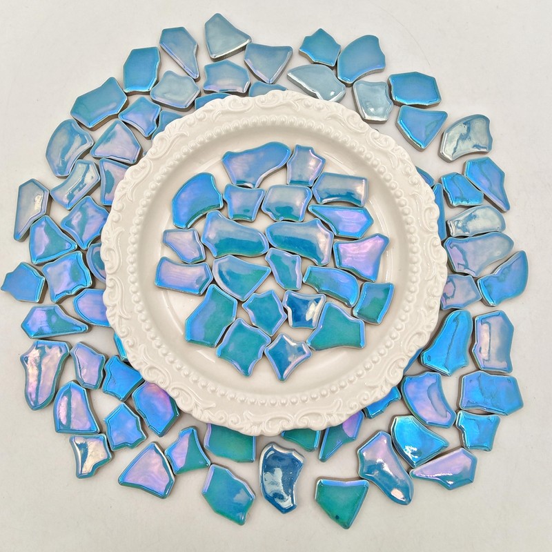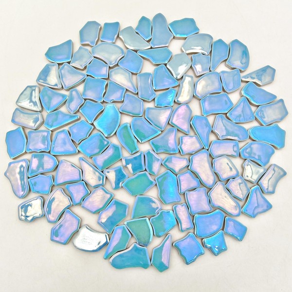 0.68"-1.53" Irregular Ceramic Mosaic Tiles,500g/1.1lb Ceramic Mosaic Tiles for Crafts,Ceramics Mosaic Pieces for Home Decoration or DIY Crafts,Mosaic Making Supplies (Iridescent Pearl Sky Blue)