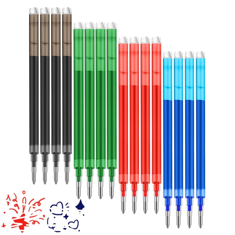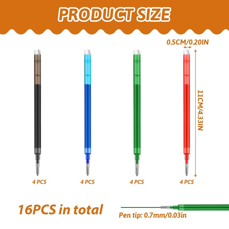 0.7 mm Erasable Gel Ink Pen Refills Compatible with Frixion Friction, Smooth Writing Multicolor Retractable Fine Point Pen Refill for School Office Home Art (4 Colors, 16)