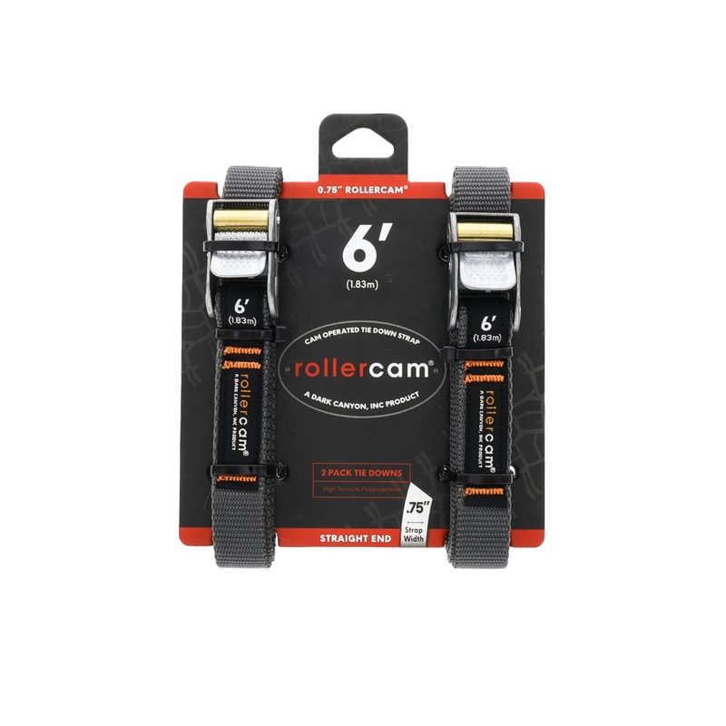 Rollercam 0.75” Tiedown Straps with Rollercam Buckle - Cam Strap Polypropylene Webbing with Triple-Bar Tack Stitching – Outdoor Gear Heavy-Duty Lashing Straps, 95 lb Load, Straight End, 2 Pack, 6 Foot