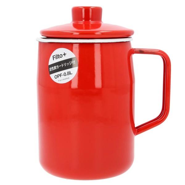 富士ホーロー 活性炭カートリッジでしっかり濾せる オイルポット 0.8L 活性炭 カートリッジ付 フィルトプラス レッド OPF-0.8L.R
