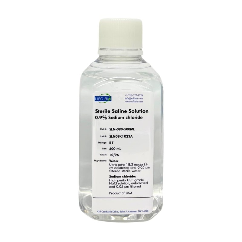 - APPLICATION: For research/lab purposes only. Pure 0.9% saline solution.