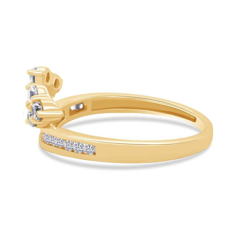 - Adds A Touch Of Nature-Inspired Beauty To Your Look Three Stone Enhancer Ring 14K Gold Over Sterling Silver Makes a Standout Addition to Your Collection With 0.97 Carat Round Shape White Cubic Zirconia