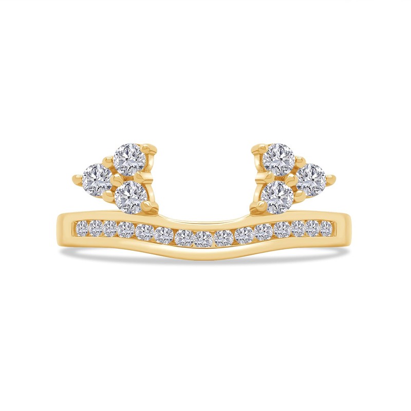 0.97 Carat Round White Cubic Zirconia Three Stone Enhancer Guard Ring 14K Yellow Gold Over Sterling Silver Ring Size-8