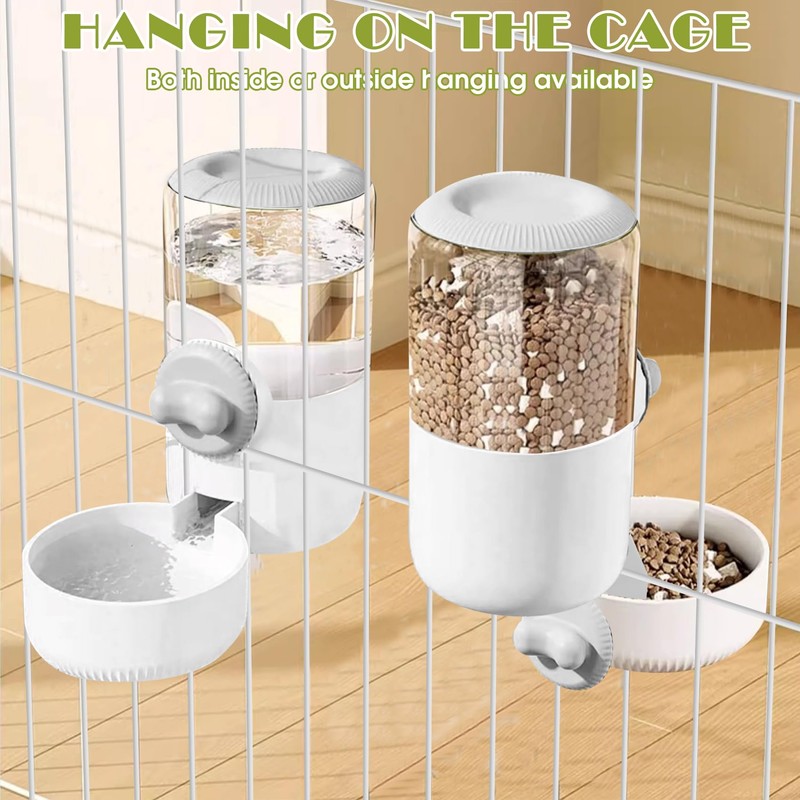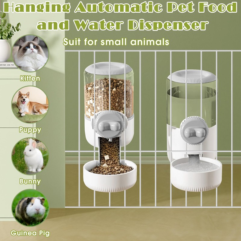 - Hanging automatic pet food and water dispenser set have enough capacity for small animals, like Kitten, puppy, bunny, guinea pig, allow them to enjoy fresh food and water conveniently for about 3-6 days.