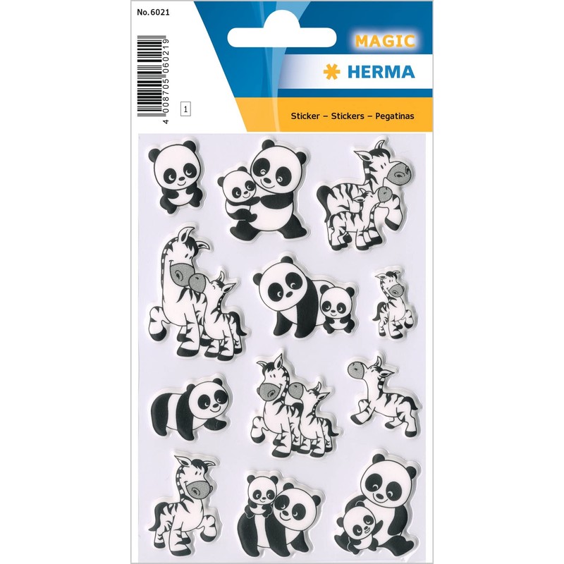 - Lieferumfang: 12 x HERMA Schaumstoff Sticker Kinderaufkleber (1 Blatt je 12 Aufkleber) - Panda- und Zebrafamilien