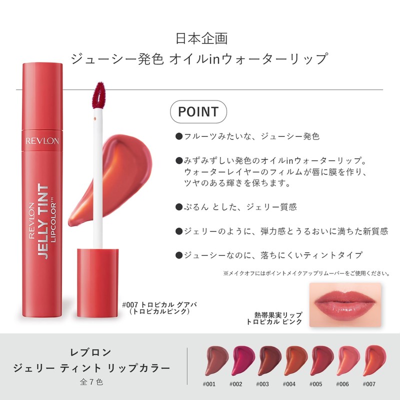 レブロン ジェリー ティント リップカラー 007 トロピカル グアバ カラーイメージ :トロピカルピンク(イエベ・ブルベ) ティントリップ 日本開発 2.6g