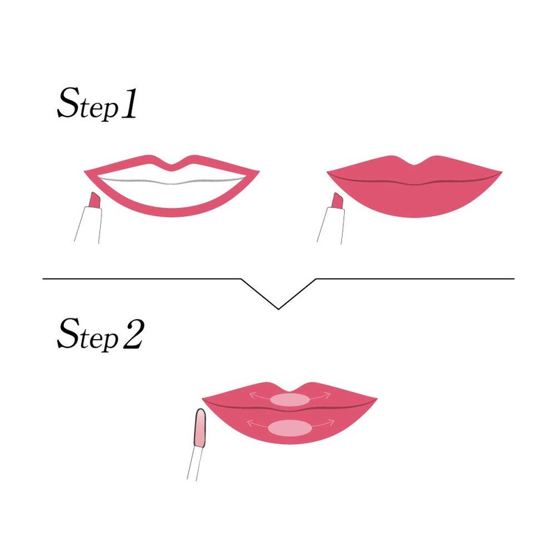 1. Apply the shade color to the contours of the upper and lower lips, and the entire lip to the interior.