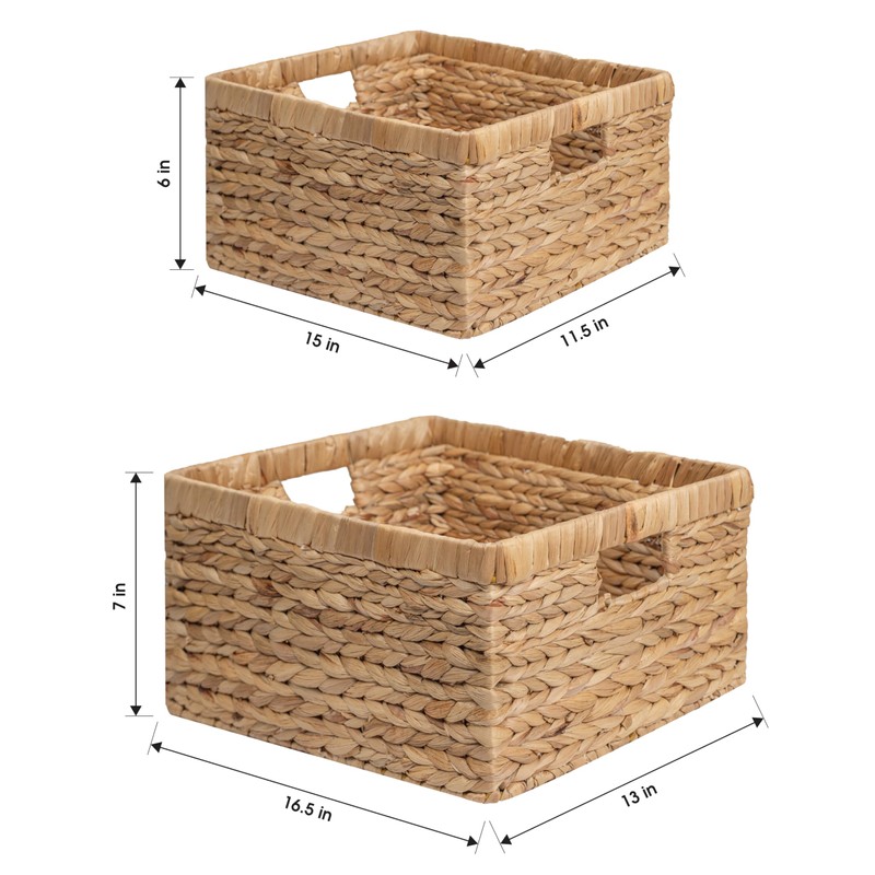 • 🍀【Perfect for Shelves & Decor】: With a natural, boho-style design, these water hyacinth storage baskets add a touch of elegance to your living room, bedroom, or office.
