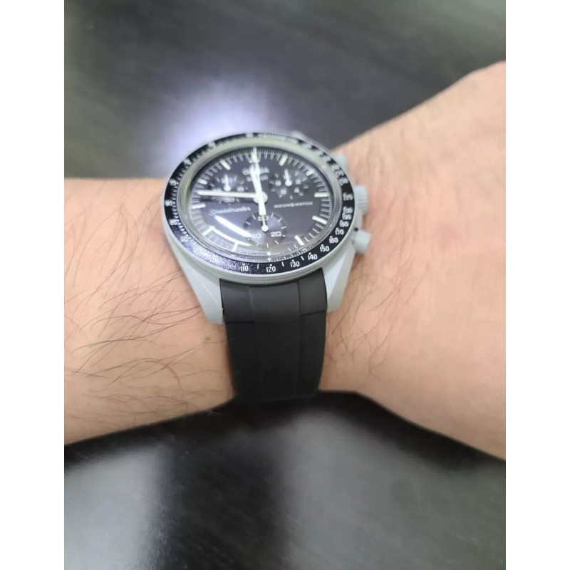 02Straps 20mm BLACK Vulcanized Caoutchouc rubber Strap Omega Speedmaster Moonswatch