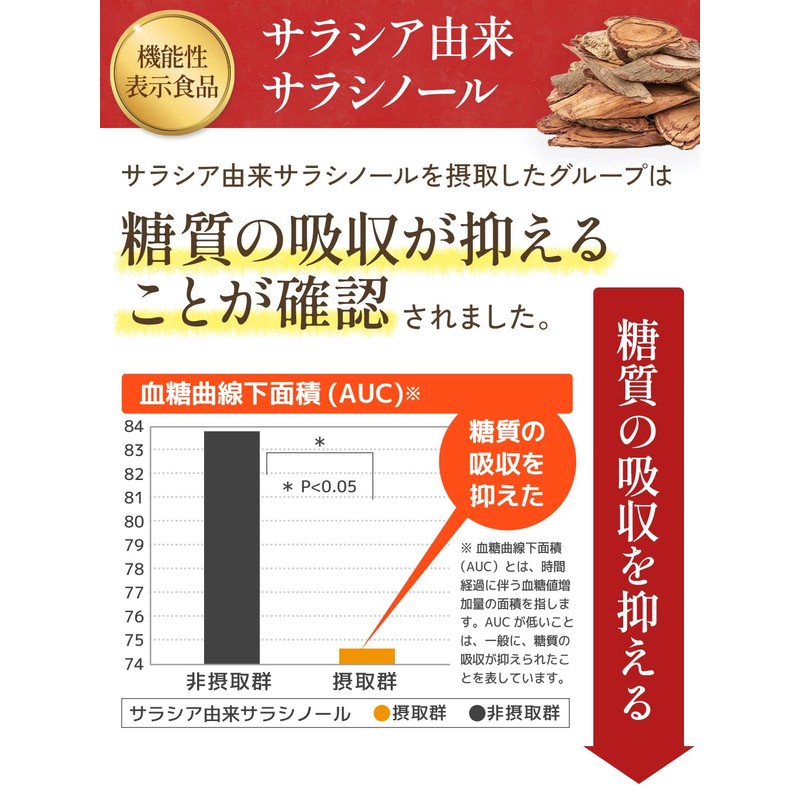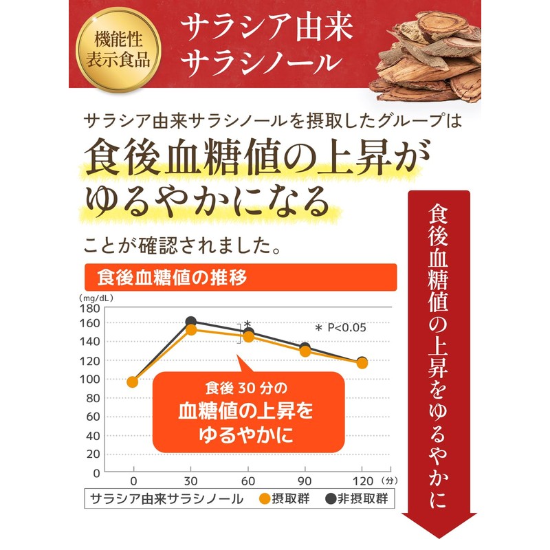 - ✅【こんな方におすすめ!】油っぽい食事が多い、、、糖質の高い食事多い、、、食後の血糖値が気になる、、、そんな方は一日摂取目安量(2粒)を水などでお召し上がりください。抗酸化作用を持ち、血中のLDLコレステロール(悪玉コレステロール)の酸化を抑制させることが報告されています。本品にはサラシア由来サラシノールが含まれます。サラシア由来サラシノールには、食事から摂取した糖の吸収を抑え、食後血糖値の上昇をゆるやかにする働きがあるので、食後がおススメです。