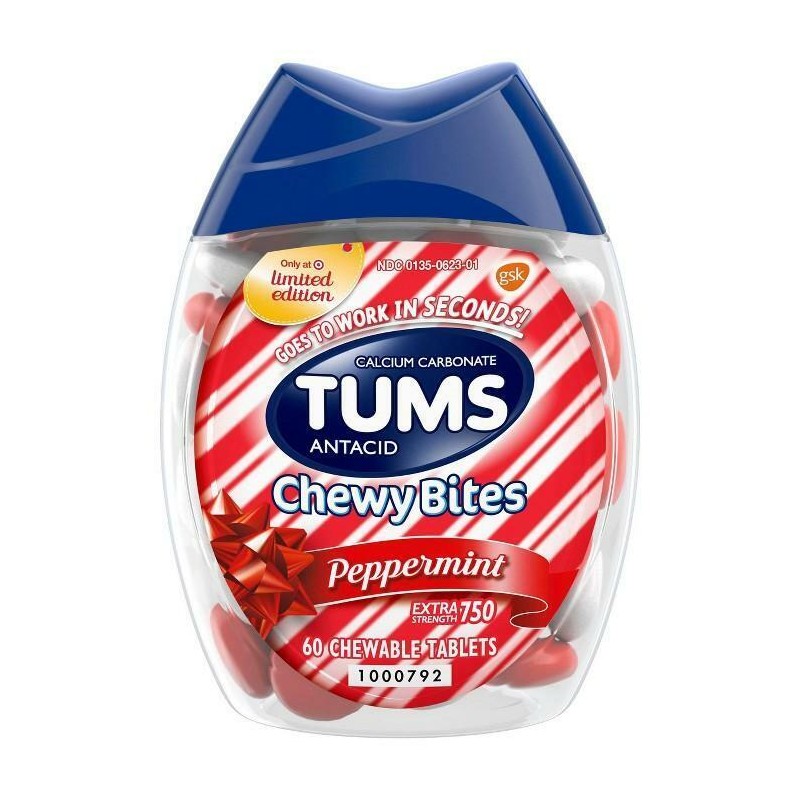 - TUMS Chewy Bites Peppermint antacids offer fast acting, extra strength heartburn relief so you can enjoy all of your favorite foods