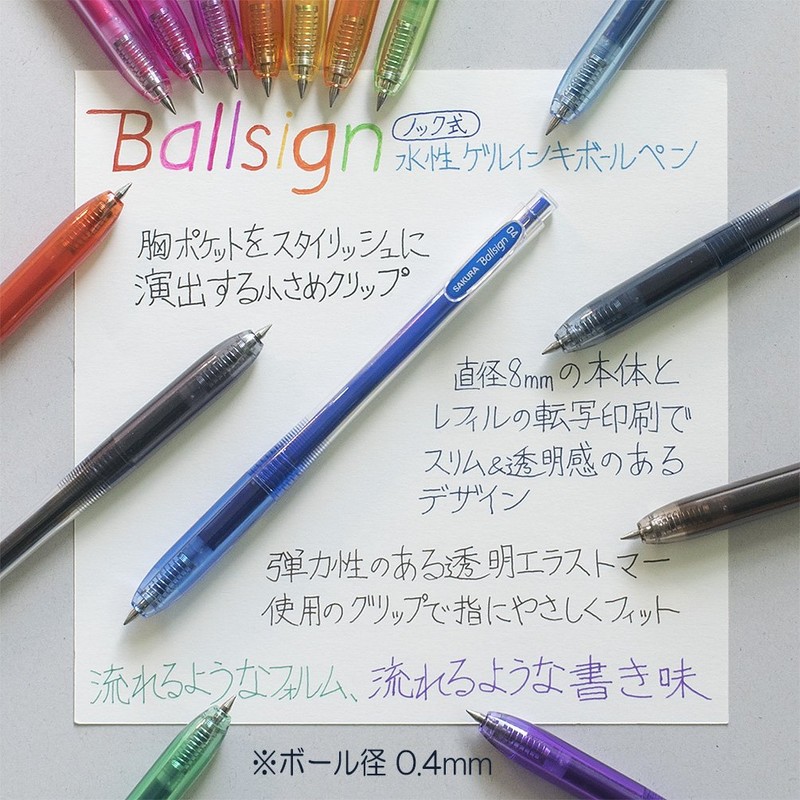 - Ink: Water-based pigment gel ink / Ball diameter: 0.02 inches (0.4 mm)
