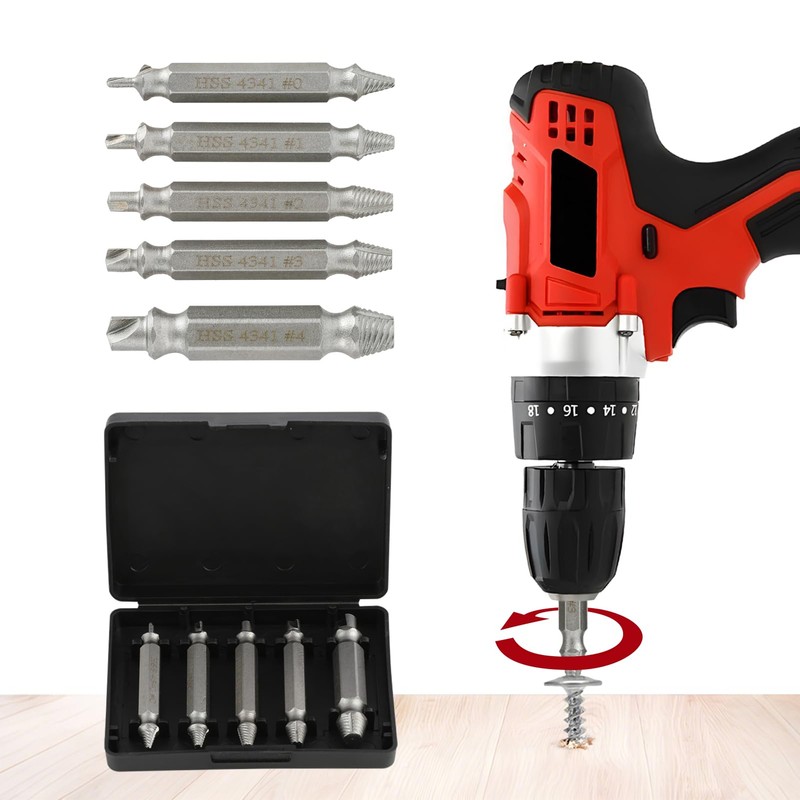 Upgrade your tool arsenal with our 5-Piece Damaged Screw Extractor Kit and experience a new level of convenience and efficiency in your repair and construction projects.