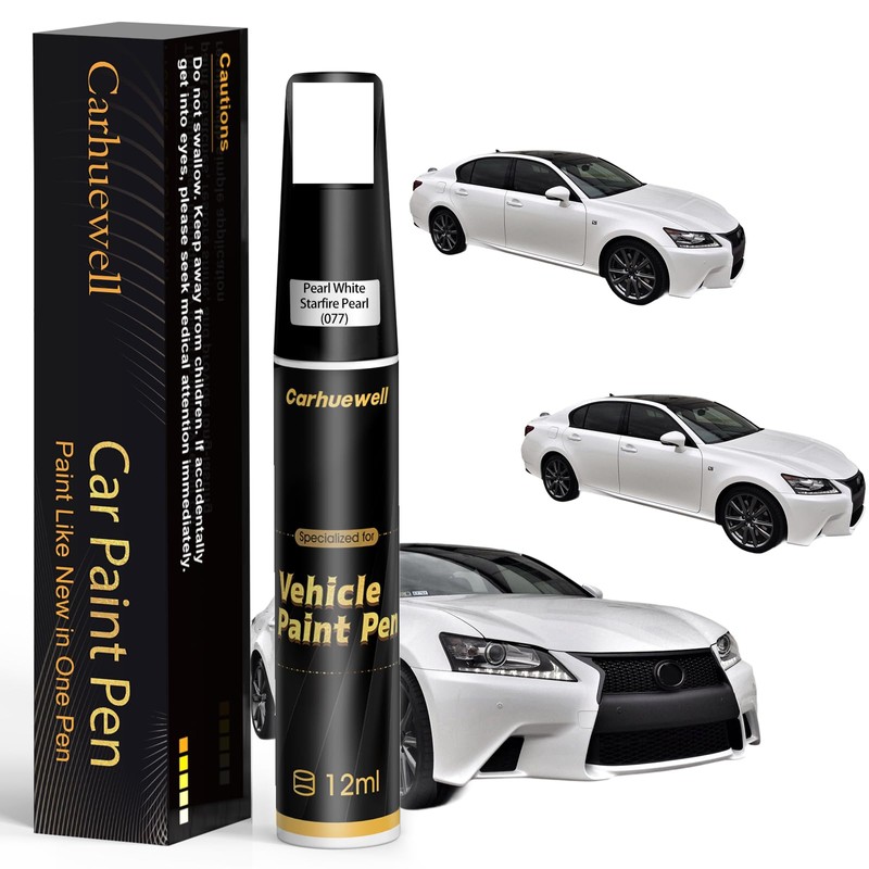 (077) PearlWhite/Starfire Pearl Touch Up Paint Compatible with Lexus, Exact Match Car Paint Pen Automotive Scratch Repair Remover Kit Quick & Easy Solution for Vehicle Chips and Nicks