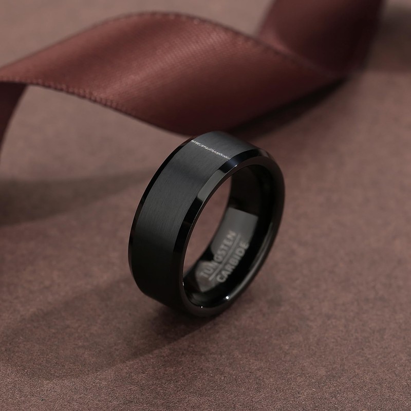- Design: The ring features a matte black line in the middle, flanked by oblique cut edges. This matte line gives the ring a simple yet elegant appearance, while the polished side edges provide a striking contrast and make the ring an eye-catching accessory.