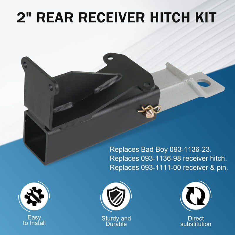 - Replaces Bad Boy 093-1136-23. Replaces 093-1136-98 receiver hitch with the 093-1111-00 receiver & pin.