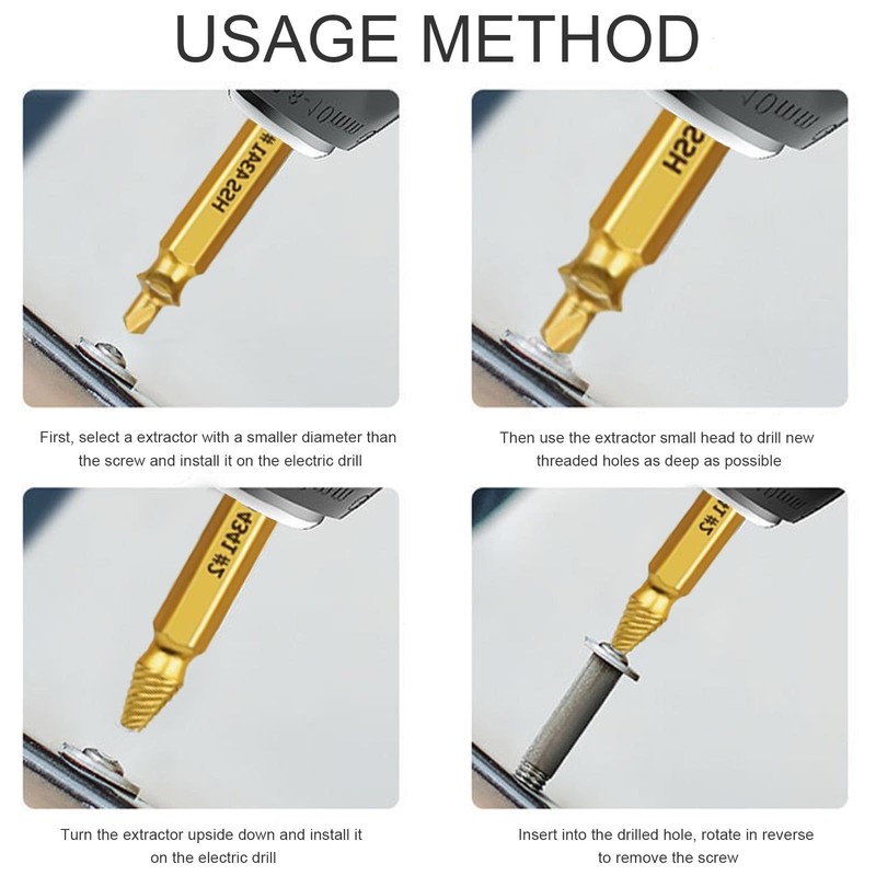 - Bi-directional disassembly: the left extractor is equipped with two ends, one for drilling and the other for removing screws or bolts, so you can easily remove damaged or rusty screws and bolts.