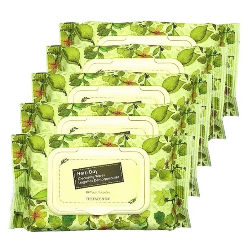 1+1+1+1+1 The Face Shop Herb Day Cleansing Tissue 70 Sheets (5 Pack) / 1+1+1+1+1 더페이스샵 허브데이 클렌징 티슈70매(5개)