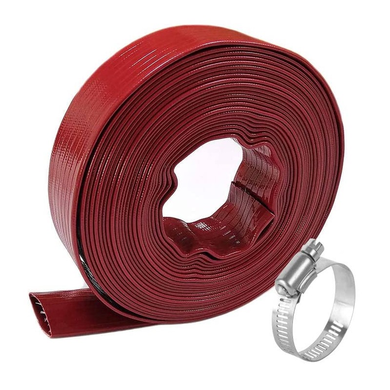 - [WIDELY APPLICATIONS] Lay-flat discharge hose is easy to connect to the pump, and easy to roll up and store in a dry place out of direct sunlight for storage. Essential pool supplies as sump pump discharge hose, trash pump discharge hose, pool drain hose.
