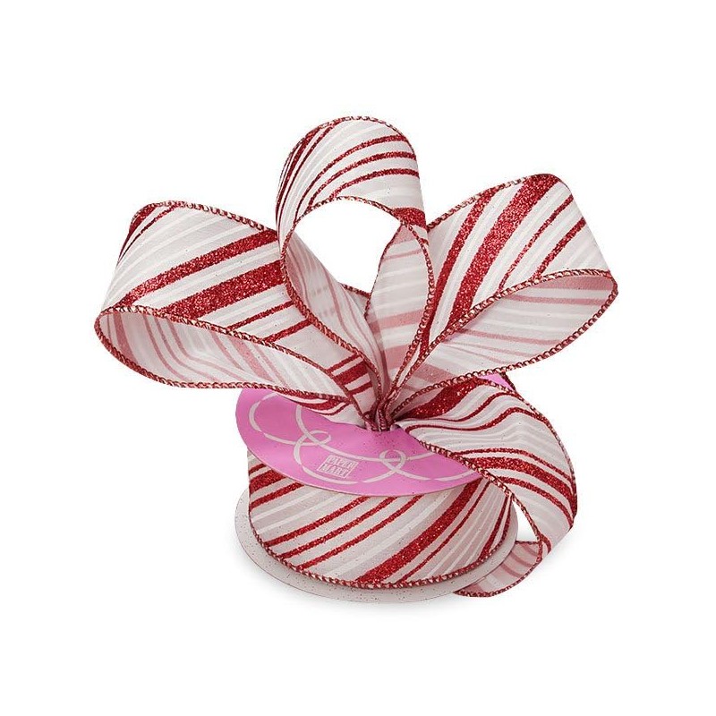 1 1/2" X 10 Yards White/Red Peppermint Stripe Satin Ribbon Christmas