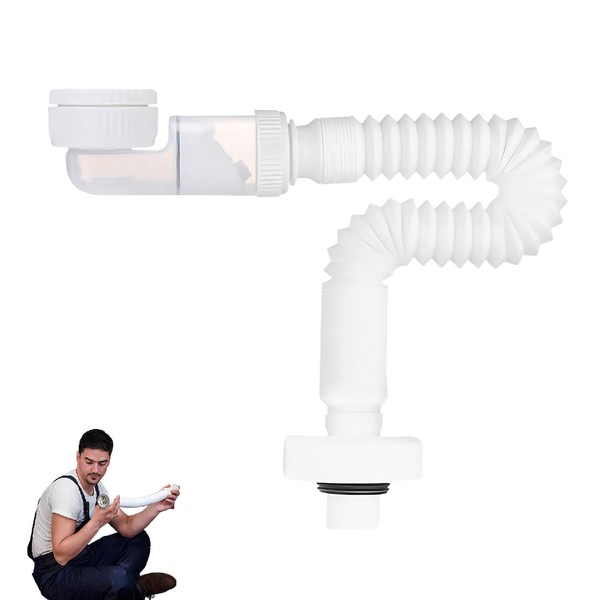 1 1/4 Inch Space-Saving Siphon Washbasin, Sink Drain Fitting, Expandable Drain Sink, Durable Drain Hose for Use in the Kitchen and Bathroom