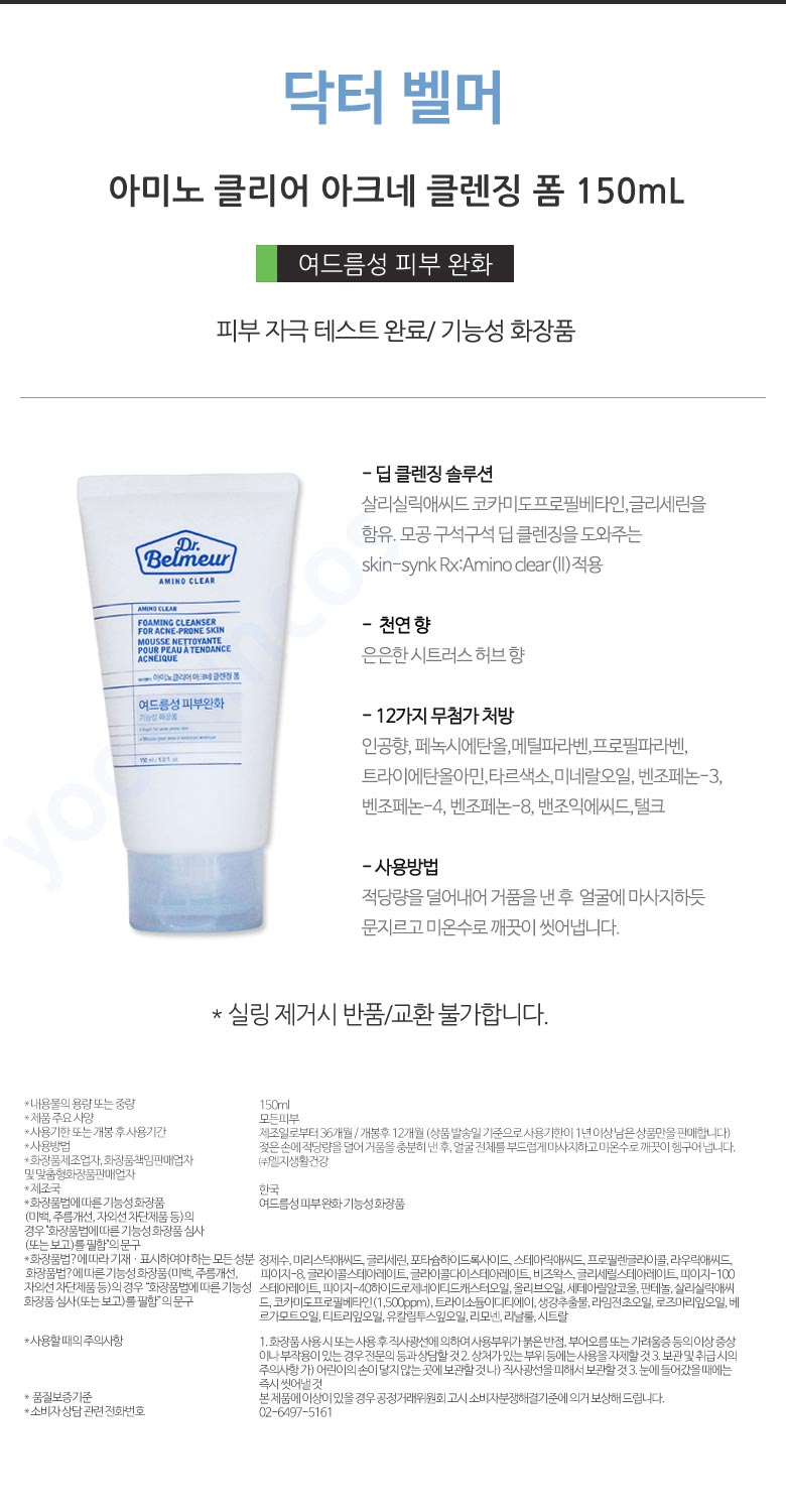 1+1 Dr. Belmer Amino Clear Acne Cleansing Foam 150mlX2 / 1+1 닥터벨머 아미노클리어 아크네 클렌징 폼 150mlX2