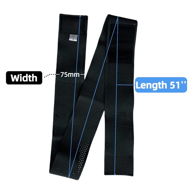 - The bandage measures 75 mm in width and 51 inches in total length. With adjustable hook-and-loop closures at both ends, it fits calf circumferences up to 38 cm