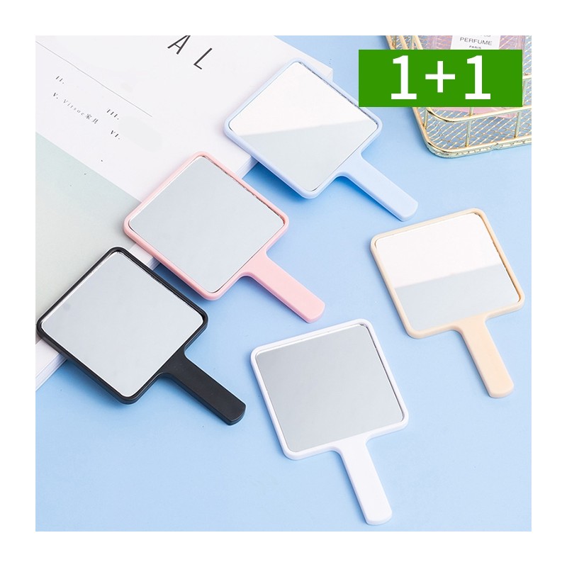 1+1 Portable hand mirror mini square mirror with handle - MIRROR01 Black