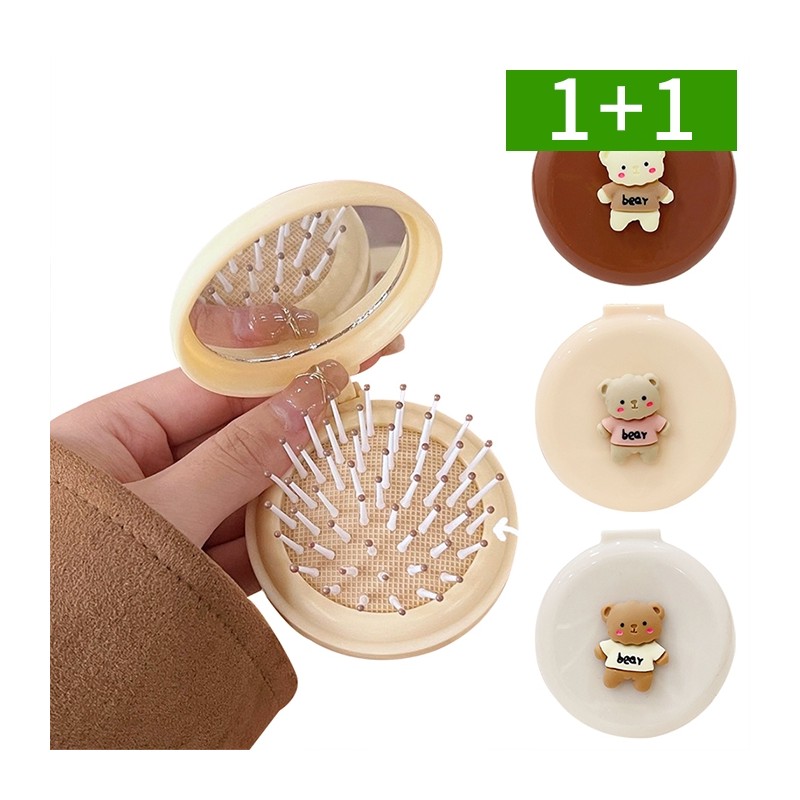 1+1 원형 미니 접이식 휴대용 손거울 - MIRROR02베이지