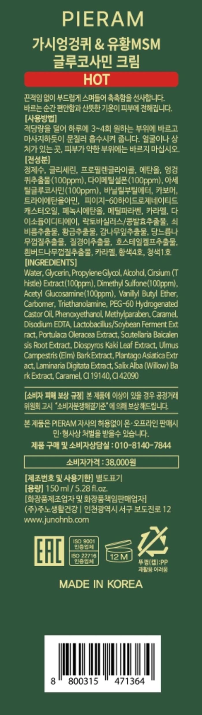 1+1 Thorn Thistle Sulfur MSM Glucosamine Cream Hot HOT + Free Gift / 1+1 가시엉겅퀴 유황MSM 글루코사민 크림 핫HOT +사은품증정