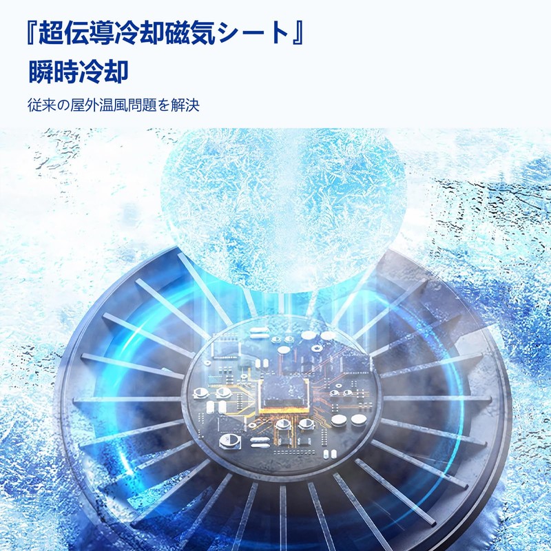 • 【氷涼ブラックテクノロジー・圧倒的風速】革新デュアルコア冷却システム搭載。ターボ機能で強力な涼風を実現。最大風速9m/sを誇り、冷却専用チップを搭載することで瞬時冷却を可能にしました。物理冷却モードを1秒で即起動し、冷却プレートが肌に触れると体感温度を17℃瞬間低下。さらに400万個のマイナスイオンを放出する浄化サイクルを同時実現。アロマオイルを滴下すれば癒しの涼風と香りを同時享受可能。酷暑でも「蒸れ肌」を即時救済。
