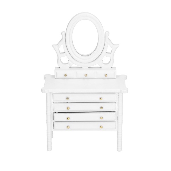 1:12 Scale Dollhouse Toilet Table High Simulation Wooden Miniature Dressing Table with Mirror White