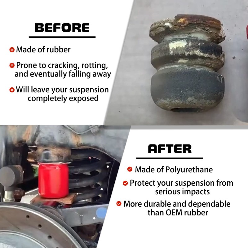 • 【Function】Use our bump stops prevent damage when a suspension bottoms out. Serves as an upgrade to your old, worn-out bump stops.Ideally protects against suspension system damage.