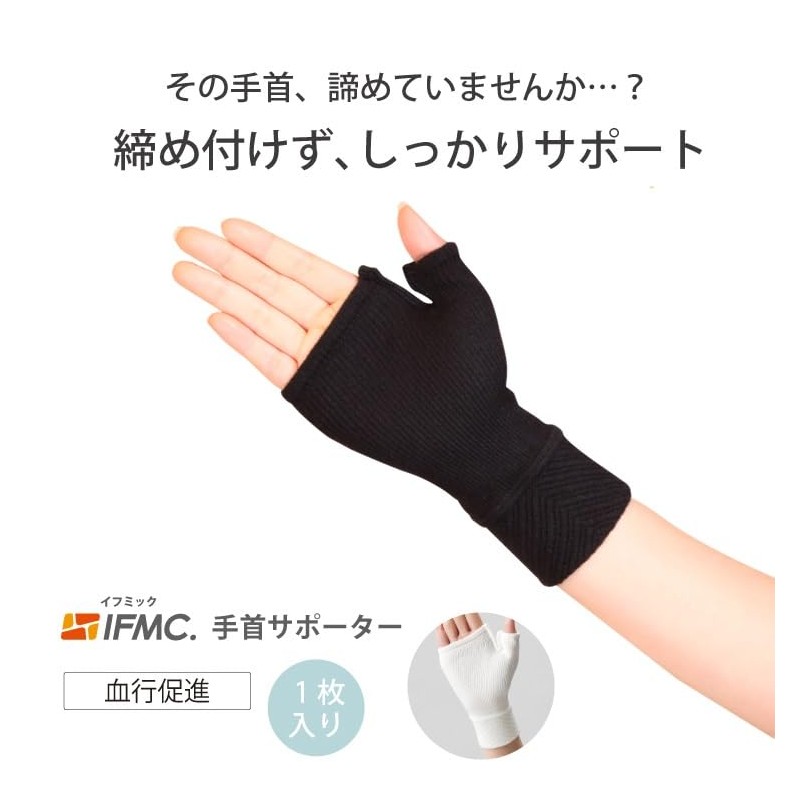 [イフミック] 手首サポーター 締め付けないサポーター 血行促進 男女兼用 1枚入り フリーサイズ14~23cm (白)