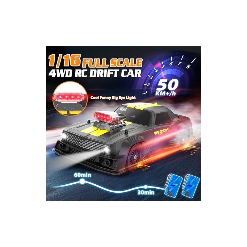 Full Proportional RC Drift Car with Gyro:1:16 remote control car uses high performance Compact design, equipped with a Steering and throttle full proportional for millimeter-level accuracy supports proportional control of throttle, steering, and brake. Moreover rc drift car a built-in ESP gyro system and Multi-link suspension design, give to drift car supply unmatched control and stability