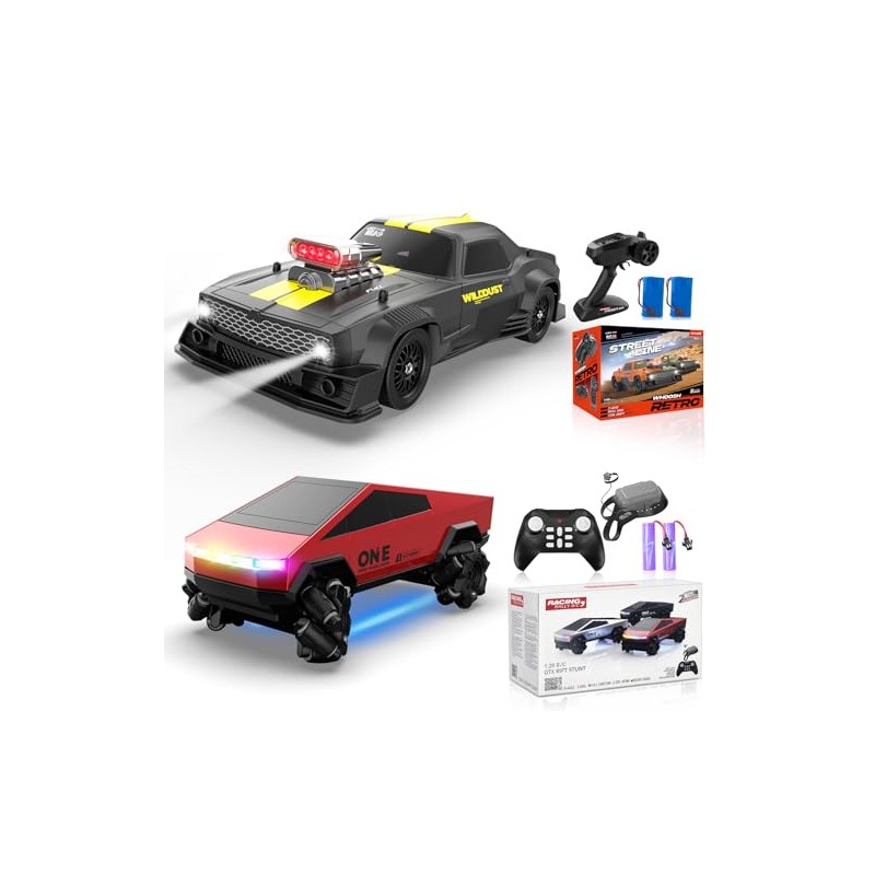 Cool Remote Control Stunt Car: Our 1:28 rc truck not only has a unique design and realistic car form, but also has excellent starting ability and super flexibility! Kids can easily control the RC stunt car to perform forward, backward, left/right turns, and 360° spins and other stunts, suitable for all kids and adults