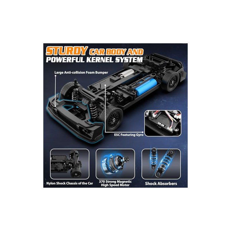 uses high performance Compact design, equipped with a Steering and throttle full proportional for millimeter-level accuracy supports proportional control of throttle, steering, and brake. Moreover rc drift car a built-in ESP gyro system and Multi-link suspension design, give to drift car supply unmatched control and stability