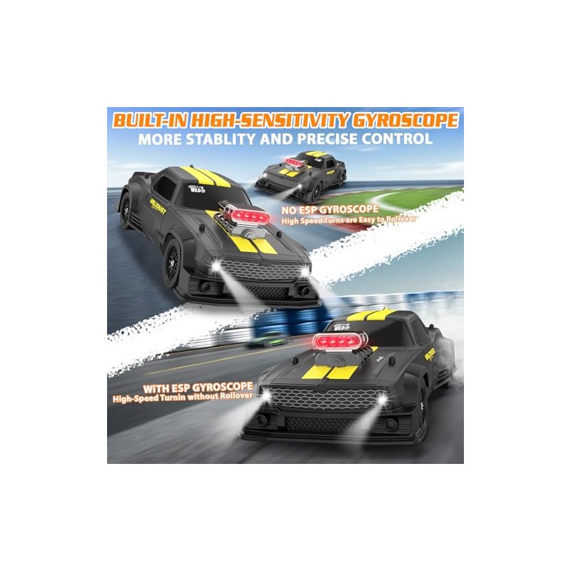 uses high performance Compact design, equipped with a Steering and throttle full proportional for millimeter-level accuracy supports proportional control of throttle, steering, and brake. Moreover rc drift car a built-in ESP gyro system and Multi-link suspension design, give to drift car supply unmatched control and stability