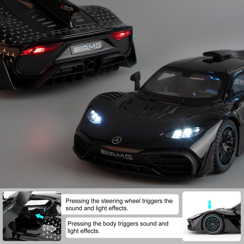 1/18 Mercedes AMG ONE Die-cast Model Car, Collectible Alloy Model with Sound and Light Function and Pullback Function, Black