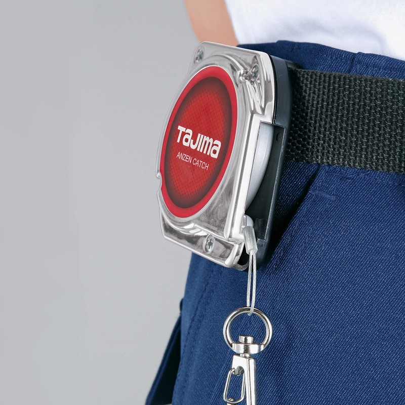 タジマ 安全キャッチ シングル(ワイヤー1本) 取付工具重量1kg用 ワイヤー長1,200mm 工具の落下防止 ワイヤー自動巻取式で腰周りがすっきり 工具落下時のショックを吸収 工具接続ワイヤー付 AZC-S