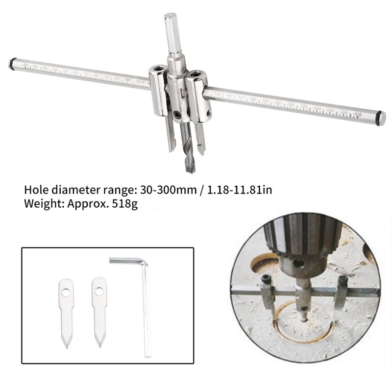 1.2-11.8 Inch Adjustable Silver Circle Cutter Hole Saw Drill Bit Set DIY Woodworking Tool