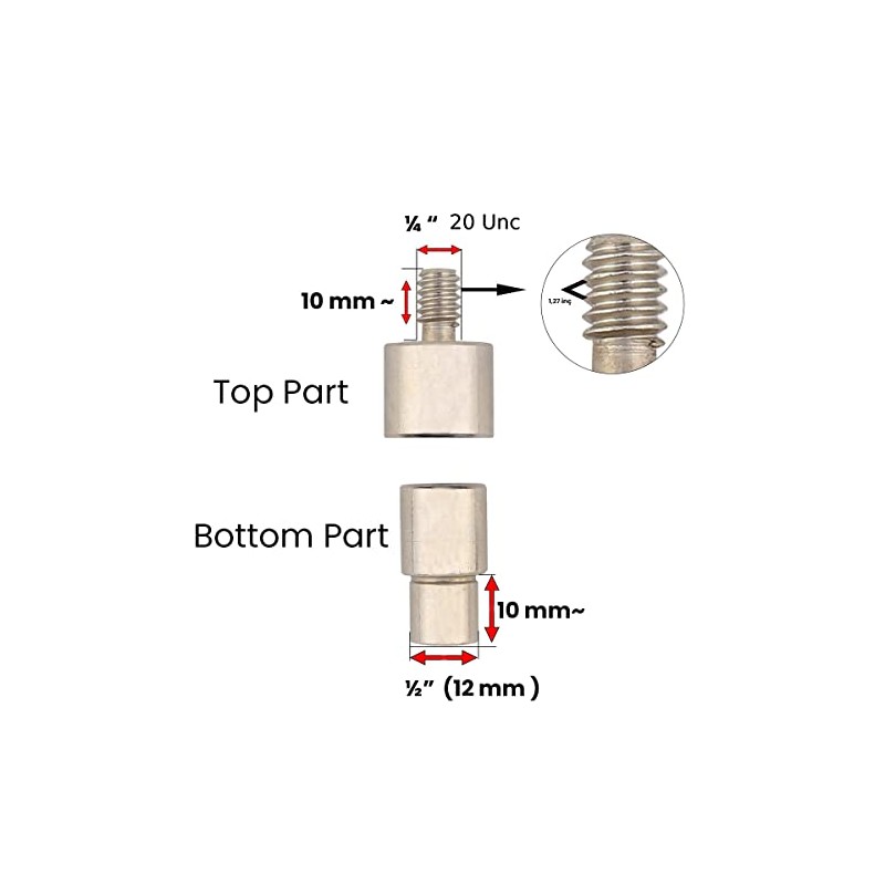 - ✔ Top thread size is 1/4" (6,3 mm) bottom diameter size is 1/2'' (11,9 mm) and fits to our DZNTOOLS hand press machine.